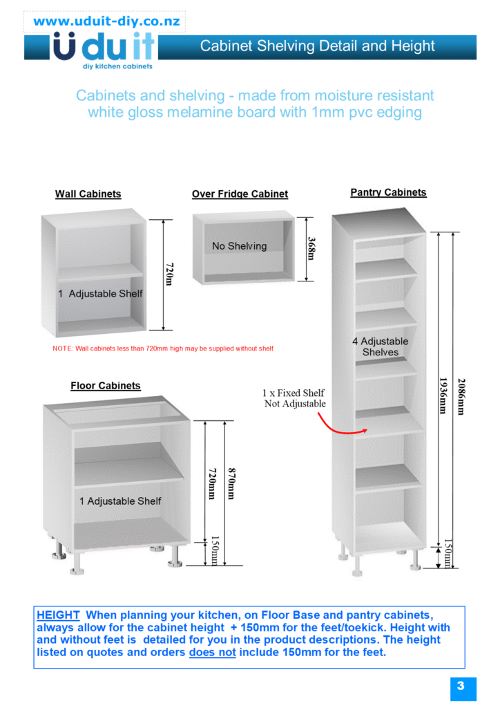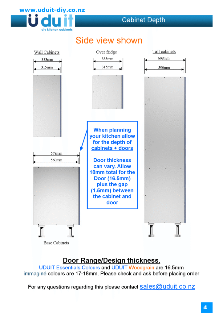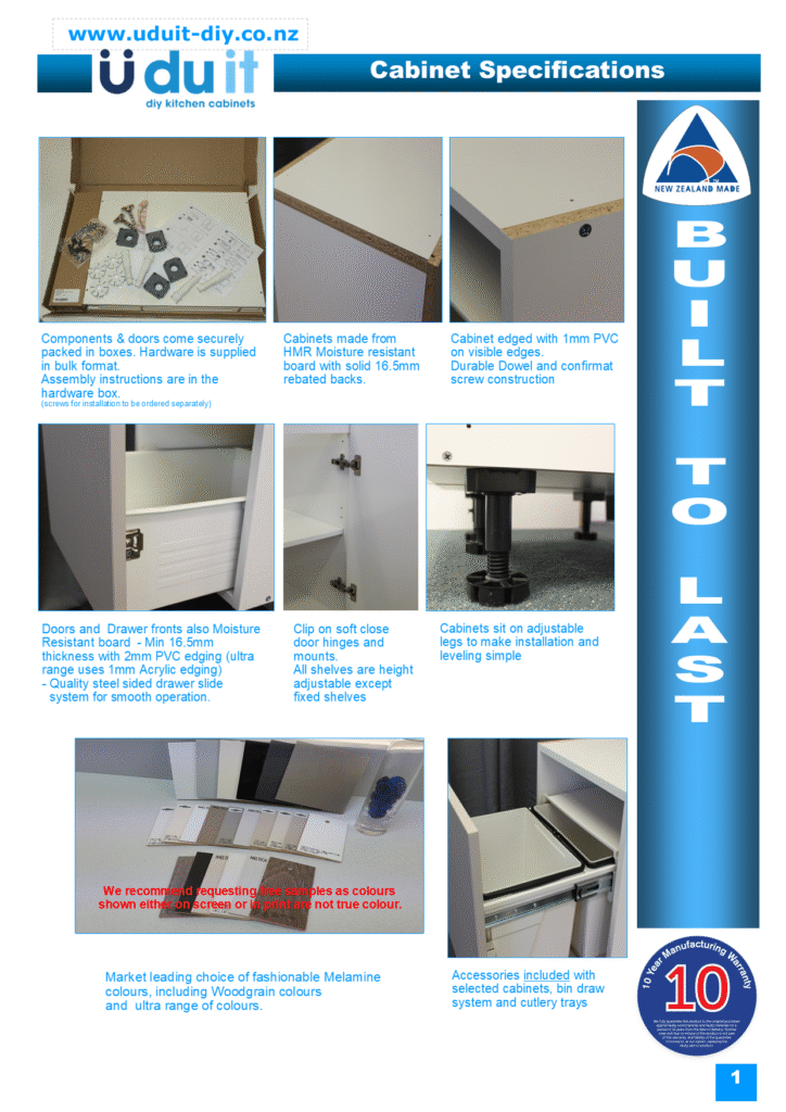 Please note the following specifications are for UDUITs standard Cabinet range not the Minimal cabinet range.